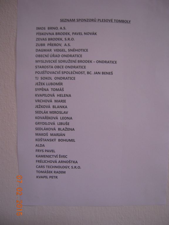 Přispívatelů - sponzorů bylo celkem rovných 30, + SDH Ondratice